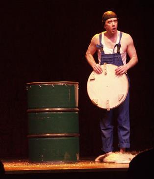 Ölfass auf die Bühne trägt: Ein tapsiger Kerl in