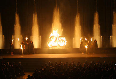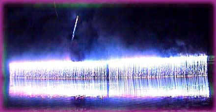 brennende Schrift vor Wasserspielen: